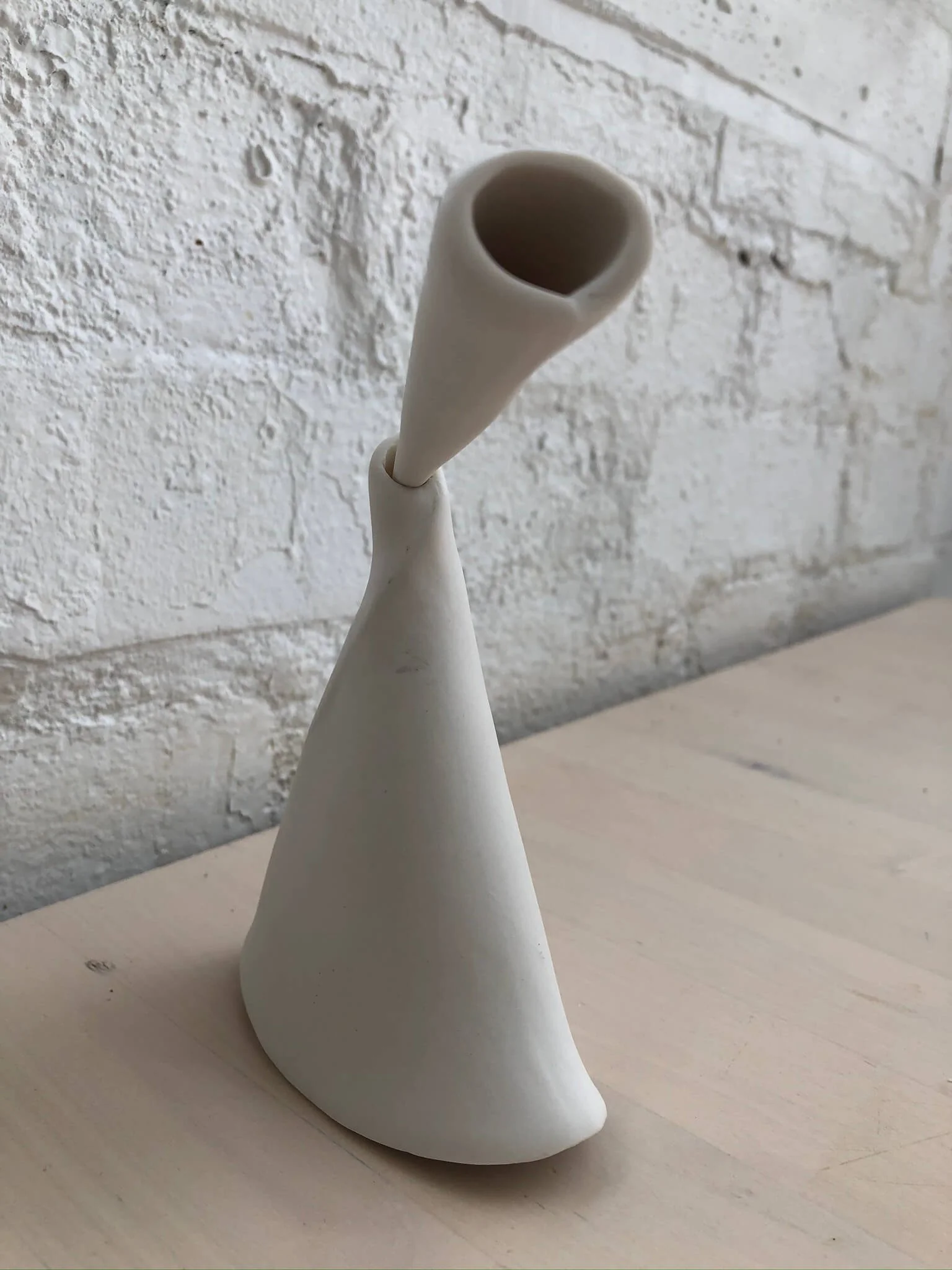 Stimulated by observing the concrete surface of this iconic building, she has treated the surface of the porcelain Listening Vessels in various ways enriching ideas of what it means to listen. The mono prints of the vessels ‘in conversation’ offer further ways of understanding how we listen.